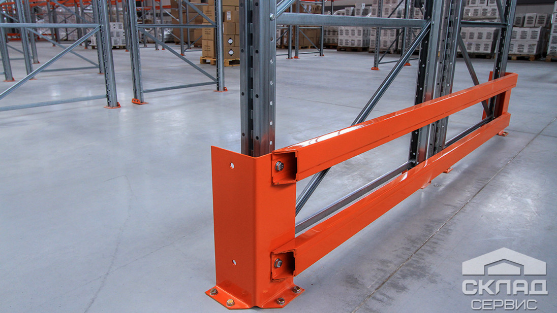 На торцах рядов и внутри арочных проездов рамы защищены от ударов погрузочной техники специальными отбойниками.