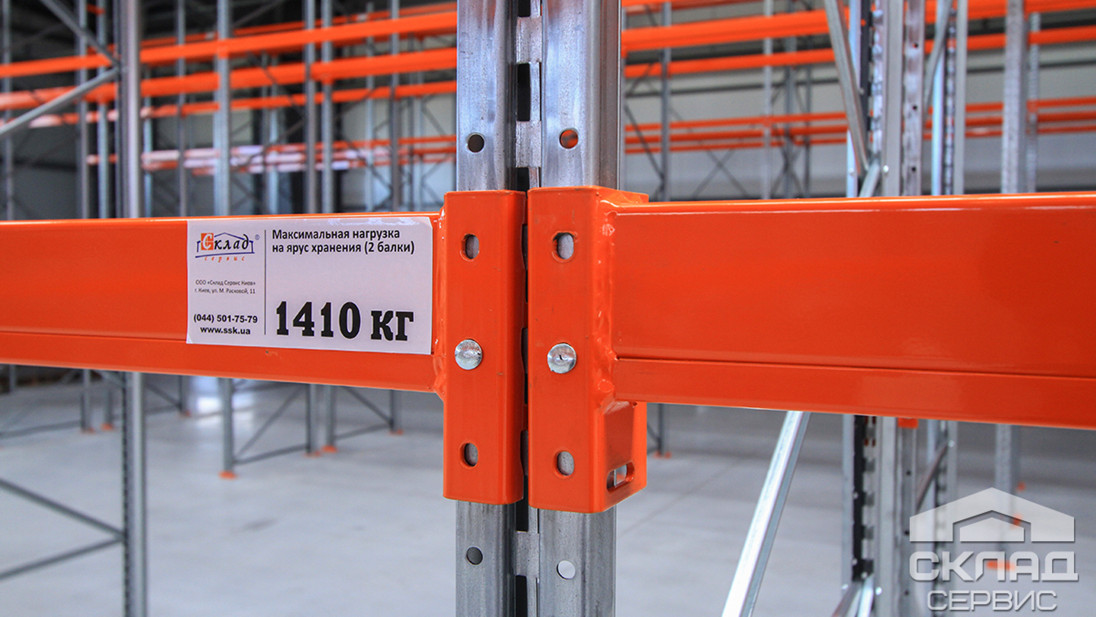 Во время монтажа в отверстия кронштейна вставляются фиксаторы, предотвращающие выбивание траверсы при случайных ударах погрузочной техники. Информационные наклейки на траверсах сообщают о максимально допустимой нагрузке на ярус.