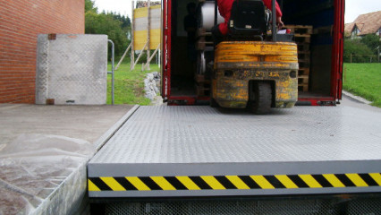 Another difference between dock tables and classic lifts is the presence of railings and folding ramps. The first ones ensure the safety of people and the safety of material values during loading and unloading. The loading ramp, on the other hand, allows hand and electric trolleys as well as forklifts to enter the wagon, container or lorry.