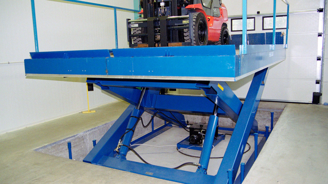 In other aspects, dock and standard lift tables have a similar design. The principle is also the same: An electronically controlled hydraulic unit affects the central axis of the scissor mechanism. This changes the angle of the crisscrossing beams so that the upper platform is lifted to the correct height.
