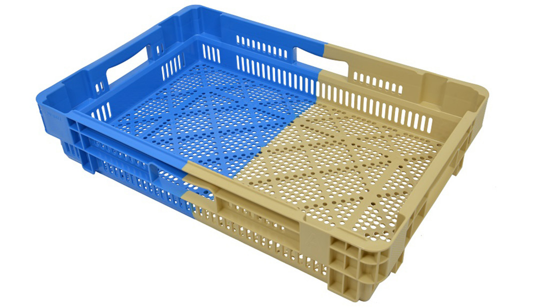 The boxes have both perforated and smooth walls and bottoms. The perforation does not impede air flow and expands the scope of their application: they can be used to transport agricultural products or food without compromising quality, as the goods inside the boxes "breathe".