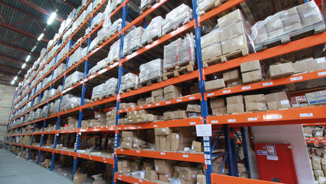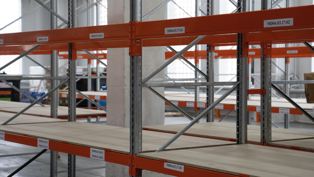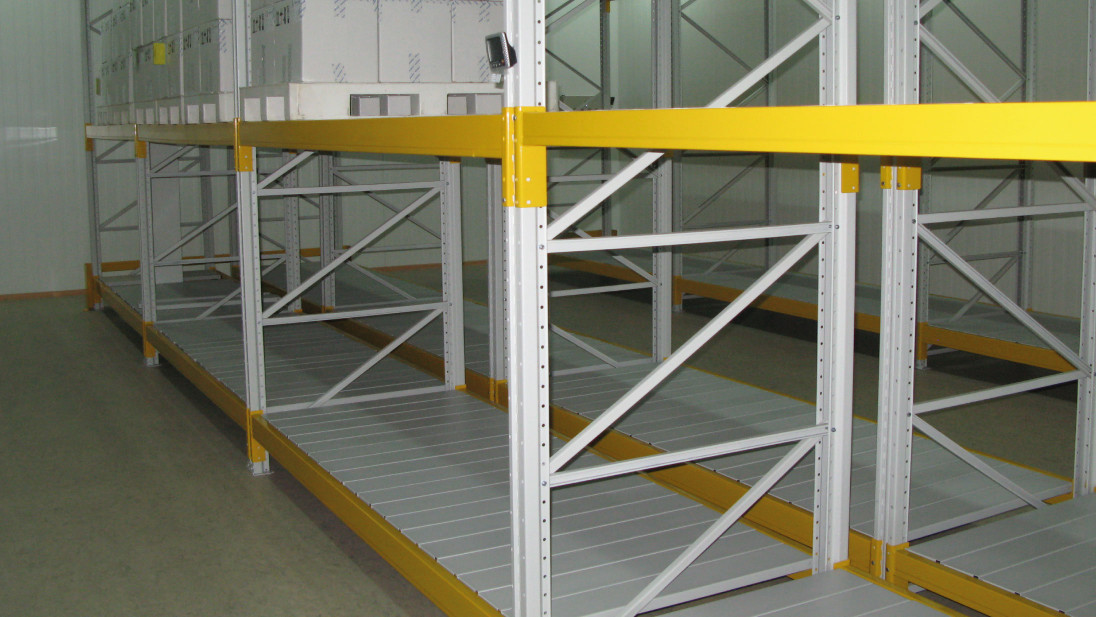 This racking system is convenient because you can place complete pallets on the upper levels, pallets for sub-sorting ‑ on the floor and open boxes for piece goods selection on shelves.
