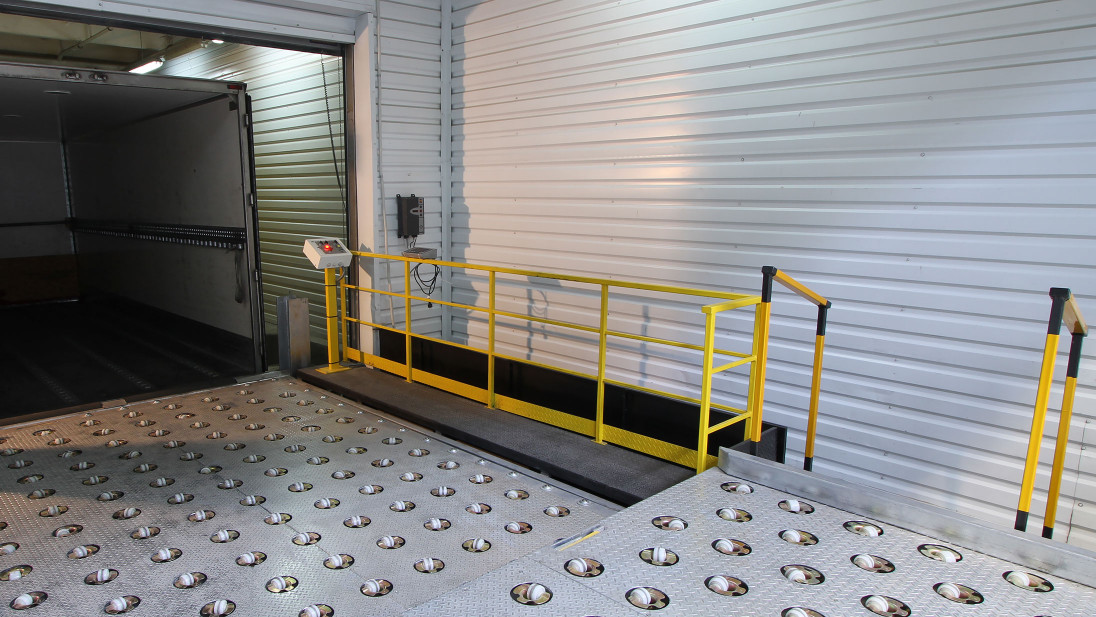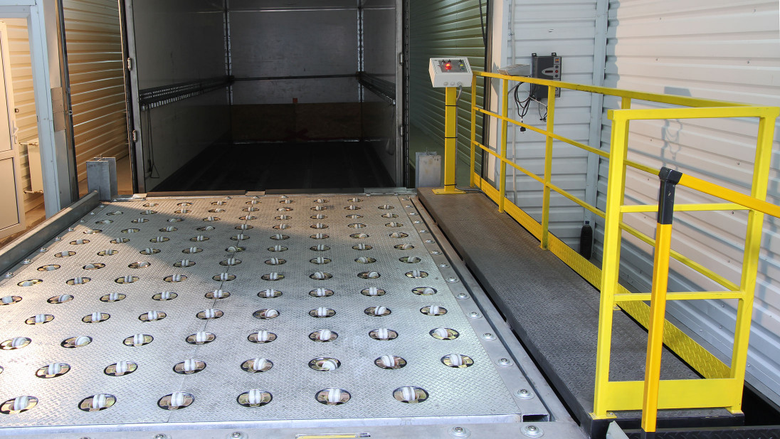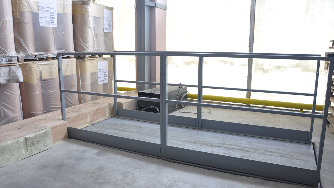 To provide access to the platform for staff and mechanisms, one of the barrier segments is replaced with folding doors. They are equipped with an electric sensor that will not allow the lifting mechanism to move if the door is open.
