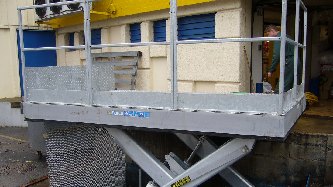 Safety railings are installed on lift tables that are used to bring inventory and people to the desired height. They prevent the load from falling from a height and damages, as well as injuries to staff at the facility. The presence of these barriers is a safety requirement and in many cases mandatory. To simplify access, one of the sections of the railing is replaced with a folding door.