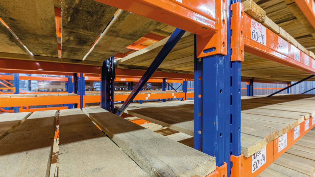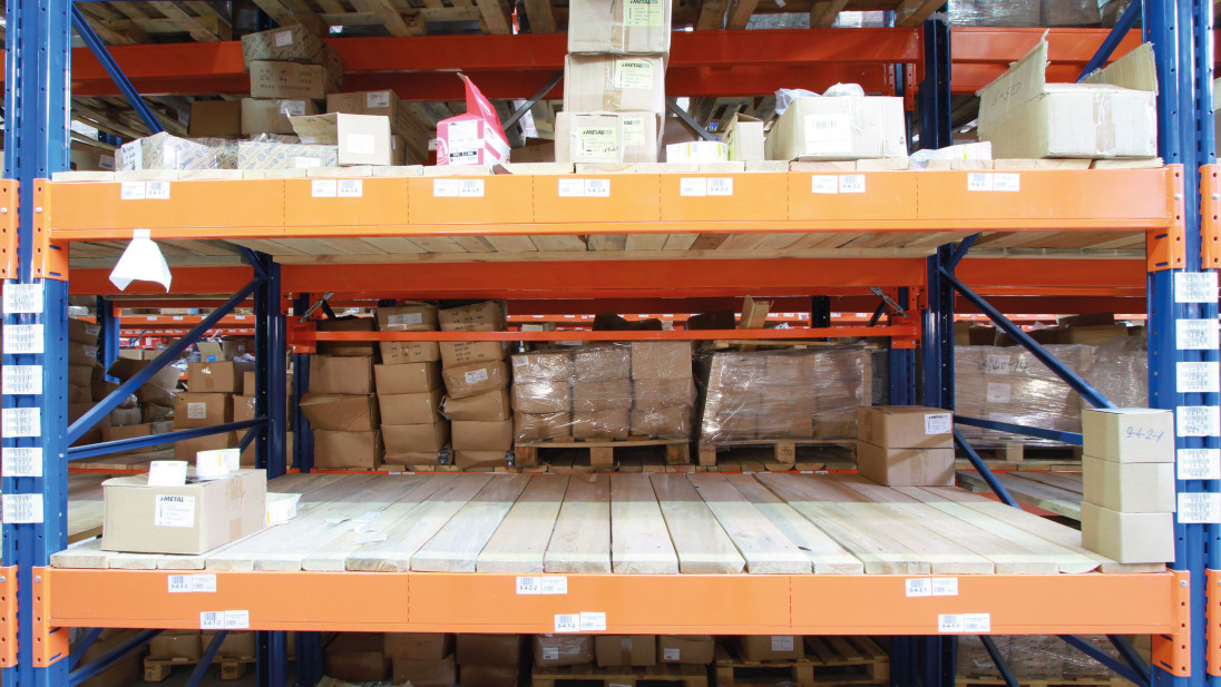They are a combined variant of pallet and shelf racking, inheriting all their advantages, namely high loads and the ability to store piece cargo. These racks are often used for out-of-gauge and heavy spare parts, in mechanical engineering, agriculture, utilities, etc. Since the entire plane of the tier is covered with flooring (hardboards or a thick MDF board), completely non-standard pallets can be installed on it and at the same time, piece units can be stored on the same tier.