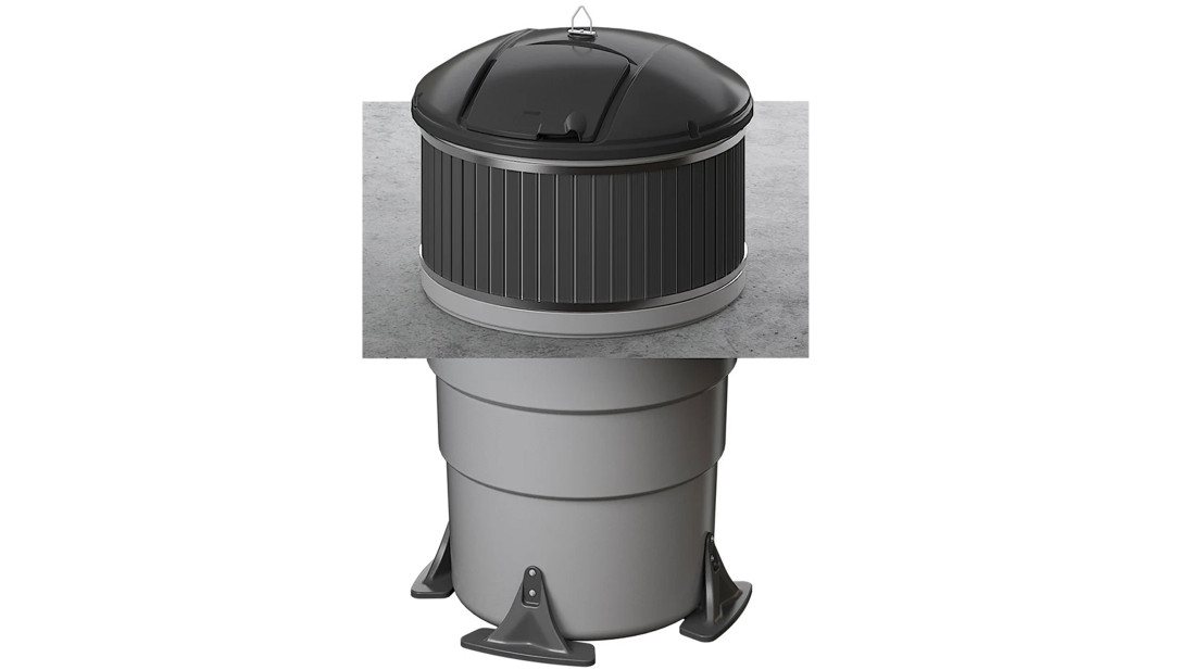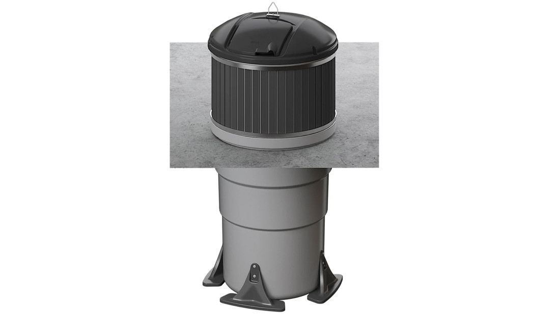 Molok Classic – это полуподземный контейнер с классическим круглым дизайном, который стал стандартом в сфере управления отходами благодаря финскому качеству и инновационному подходу. Конструкция состоит из двух основных частей: подземного резервуара, изготовленного из высокопрочного полиэтилена (HDPE) и армированного бетона.