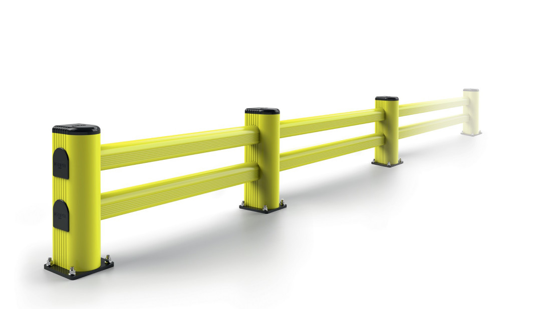 Universal fences allow you to solve several problems at once related to the organization of warehouse space or production. First, they protect racks, switchboards and other internal objects from collisions with warehouse machineries. Besides, you can use them to divide the premise into separate operational areas.