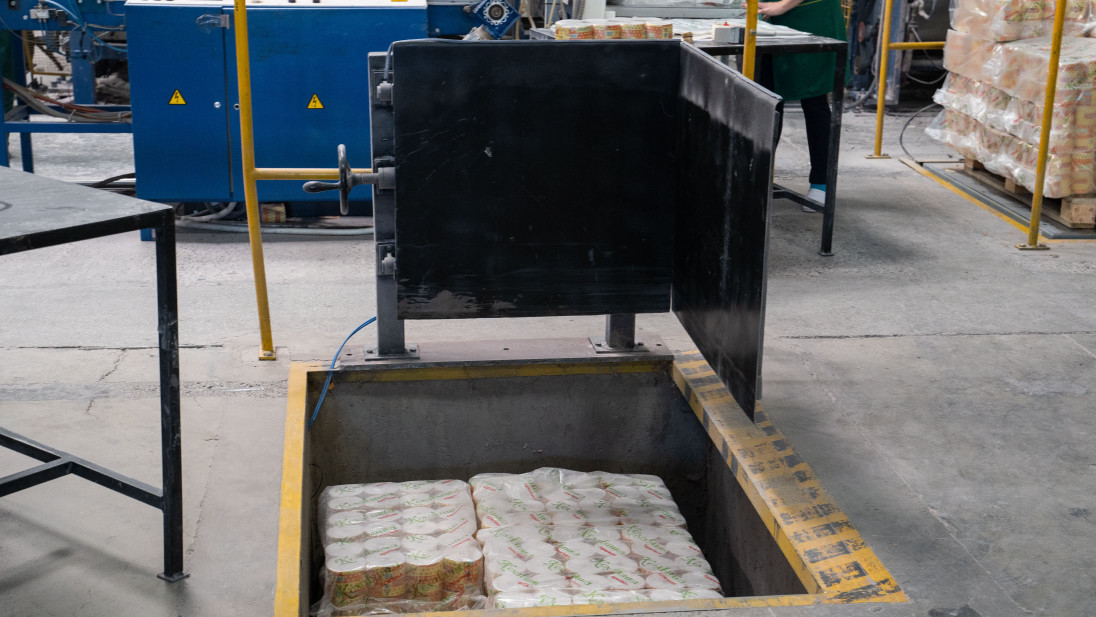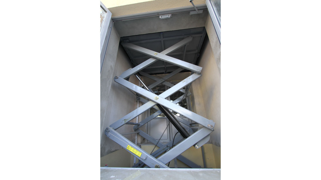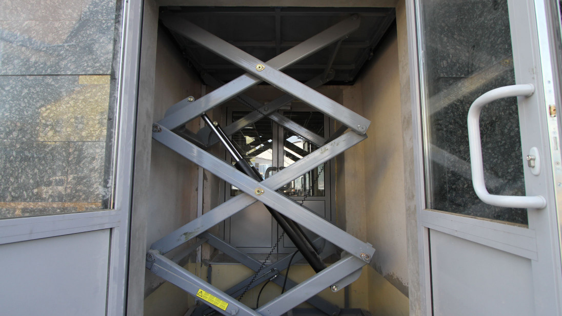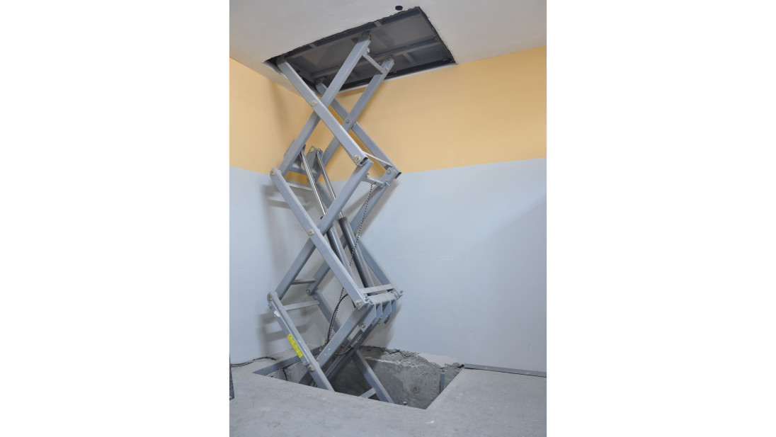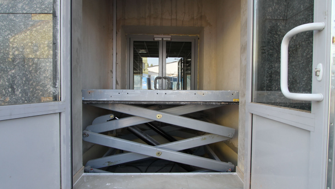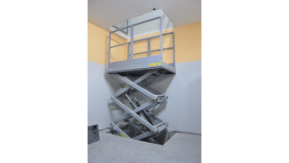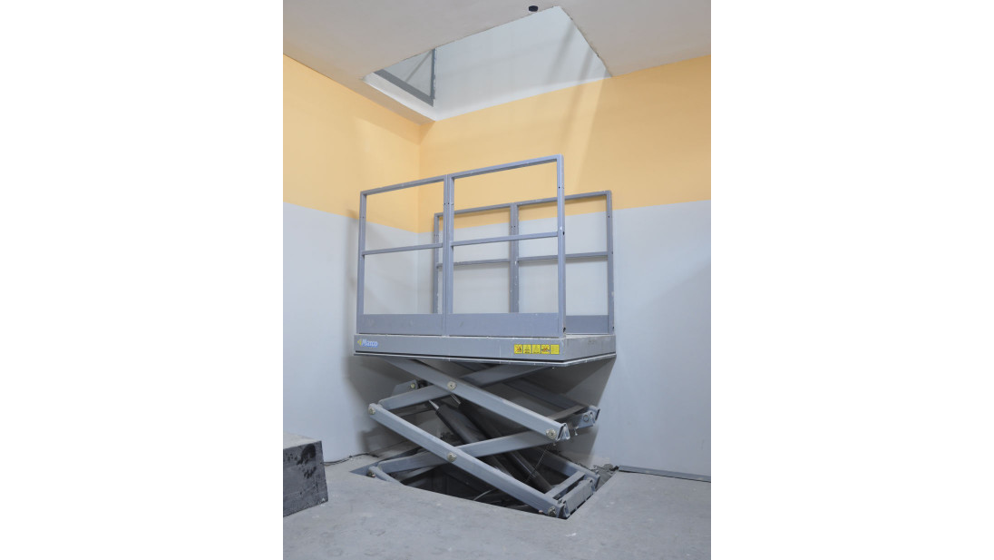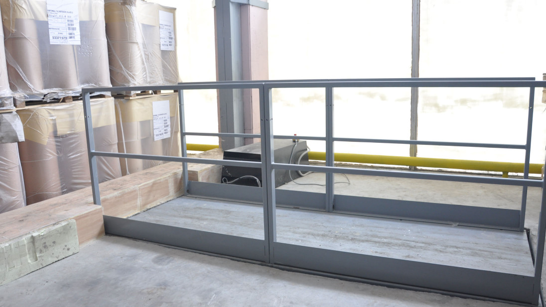 You can choose this design if you need to increase the lifting height without enlarging the platform. The fact is that with single scissor mechanisms, the length of the crossed beams has a direct effect on the ability to lift to a specific level. If a high level is required, their length and therefore the platform area must be increased. This makes it impossible to accommodate a lift table in small premises. The use of an additional scissor mechanism solves this problem. To ensure absolute safety when operating the mechanism, a special protection fence is provided, which prevents unauthorised access to the hoisters. There is also a sliding door; when it is in an open position, the automation does not allow the platform to be repositioned.