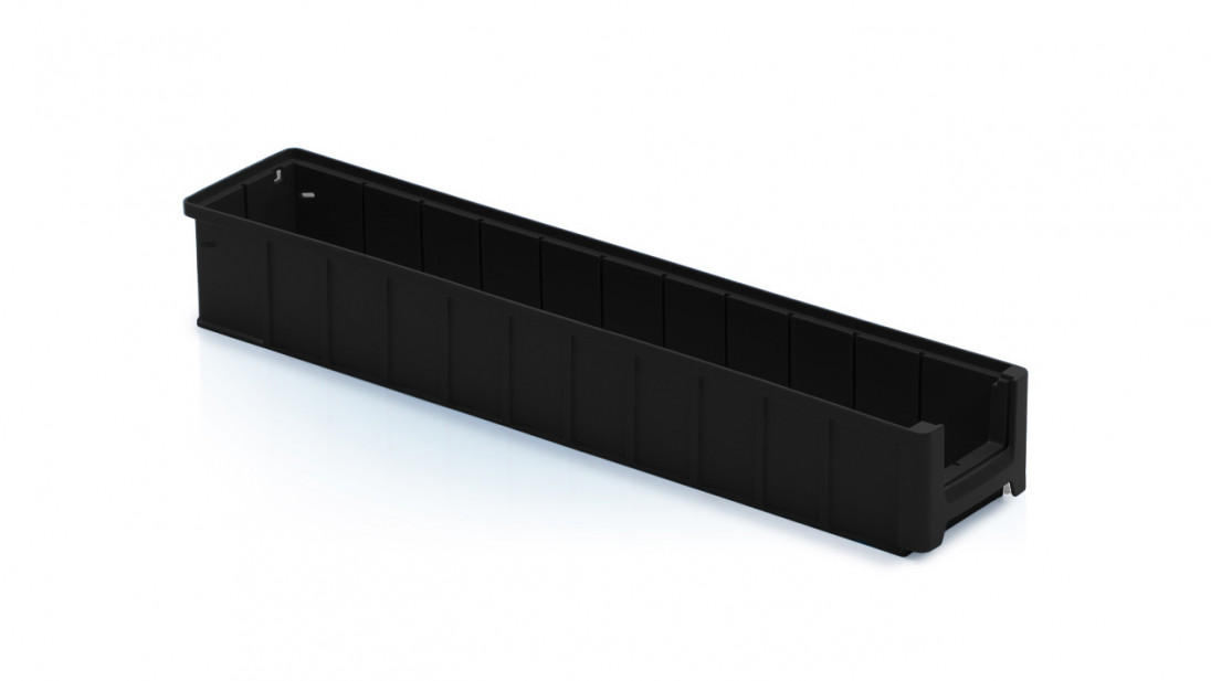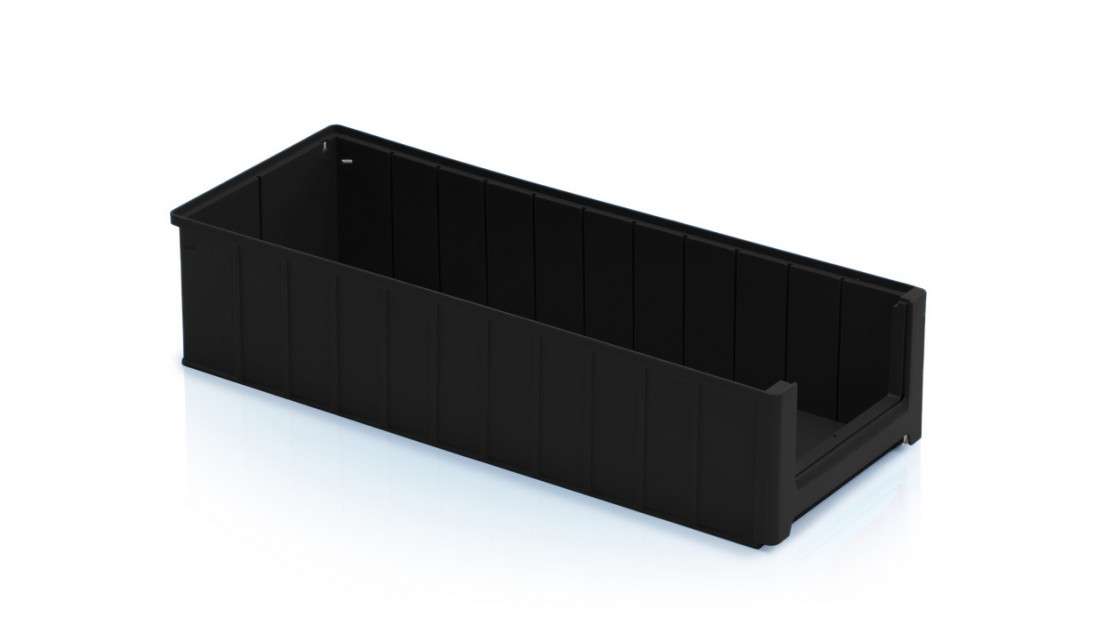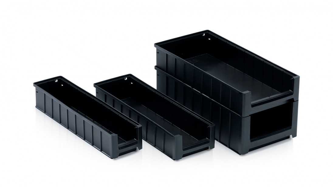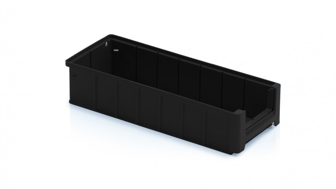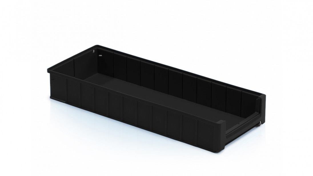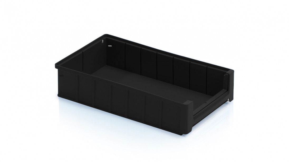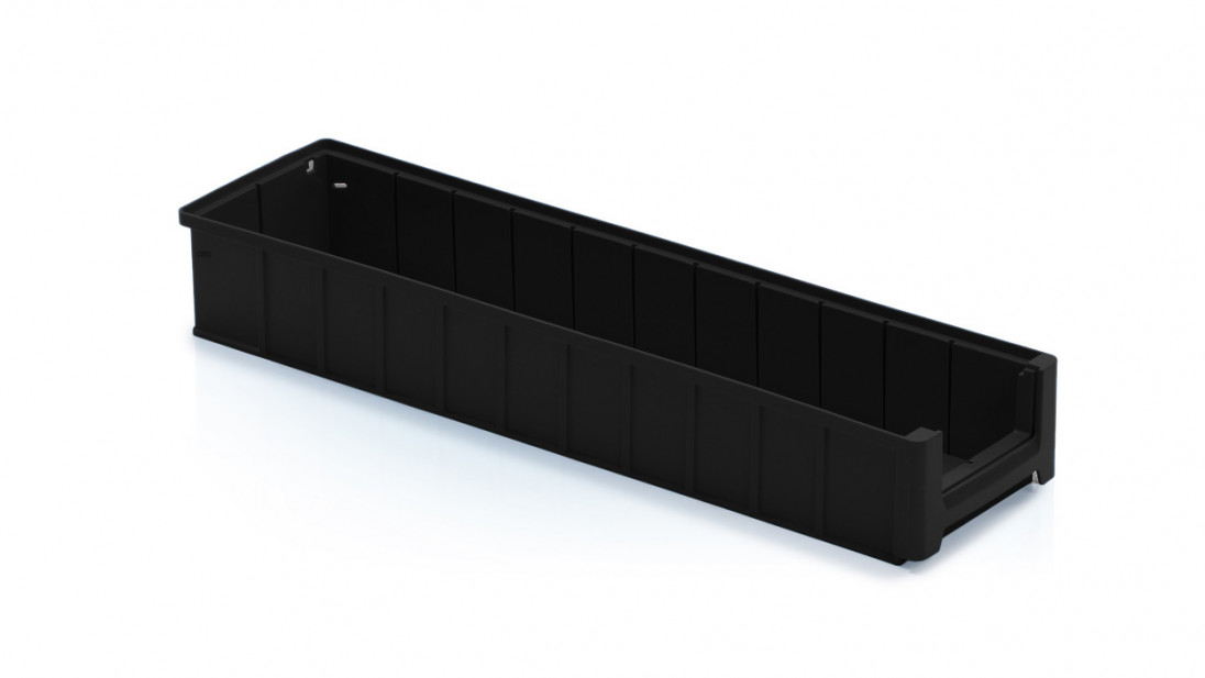Прочность полочных лотков обеспечивается благодаря наличию внутренних ребер жесткости, помогающих держать форму даже при максимальной загрузке тяжелыми элементами. Это позволяет надежно штабелировать контейнеры один на другой. Таким образом, есть возможность расширить спектр использования, кроме полочного хранения: можно сформировать подходящую для конкретных условий конструкцию и хранить сет на полу или офисном столе. В конечном счете, такая конструкция позволяет сэкономить до 15% общего пространства.