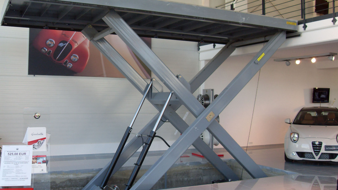 Кроме того, автомобильные подъемные столы оснащены усиленным гидравлическим узлом, который позволяет статично размещать платформу с грузом в верхнем положении в течение длительного времени. Благодаря этому не возникает проблемы постепенного снижения высоты расположения в случае, когда требуется надолго установить автомобиль для всеобщего обозрения, например, в шоуруме или автосалоне.