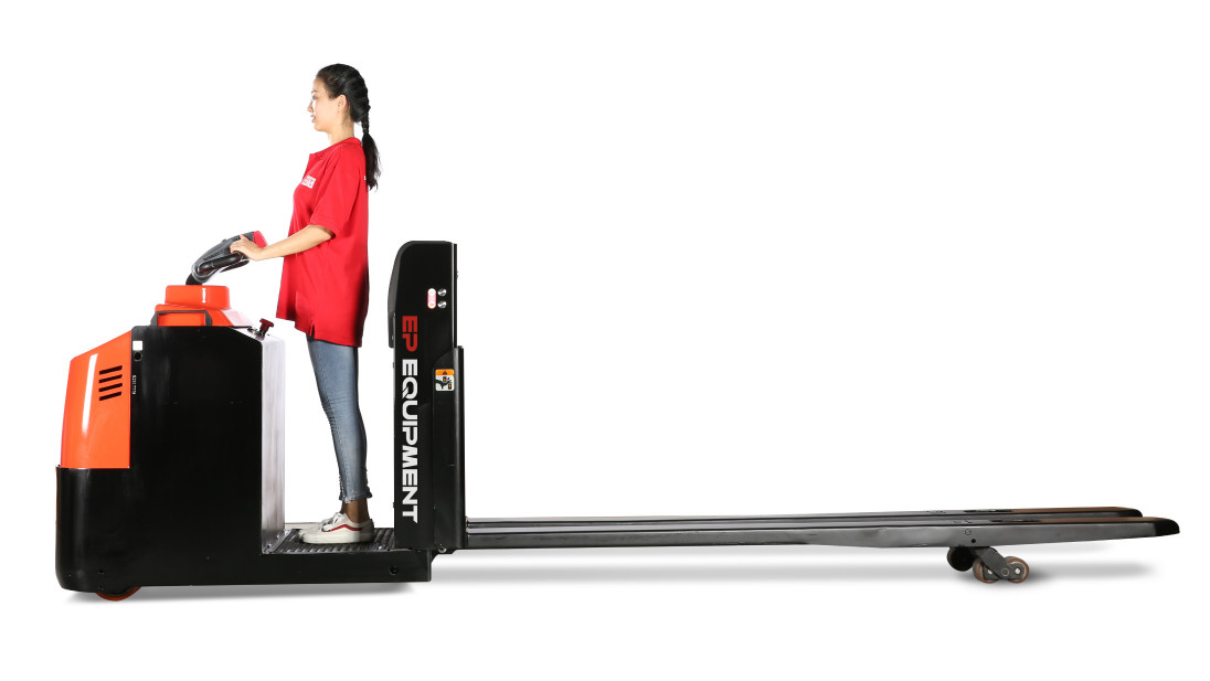 Некоторые модели способны достичь скорости в 14 км/час, лишь незначительно уступая в этом плане погрузчикам. Компактные размеры обеспечат хорошую проходимость в небольших проемах между стеллажами. Такие электротележки оснащены платформой для оператора, это позволяет лучше контролировать рабочий процесс, а также кратно ускорить перемещение поддонов по сравнению с поводковыми аналогами. Высота подъема вил – 115 мм и более, этого более чем достаточно для транспортировки паллетных грузов.