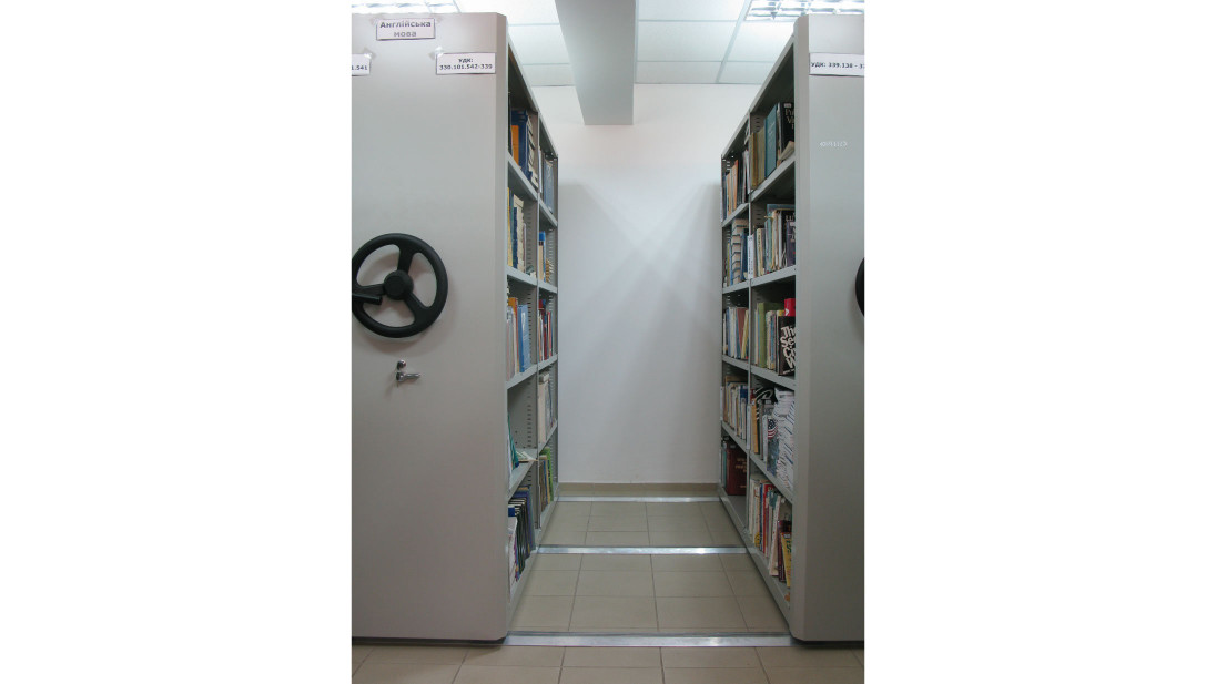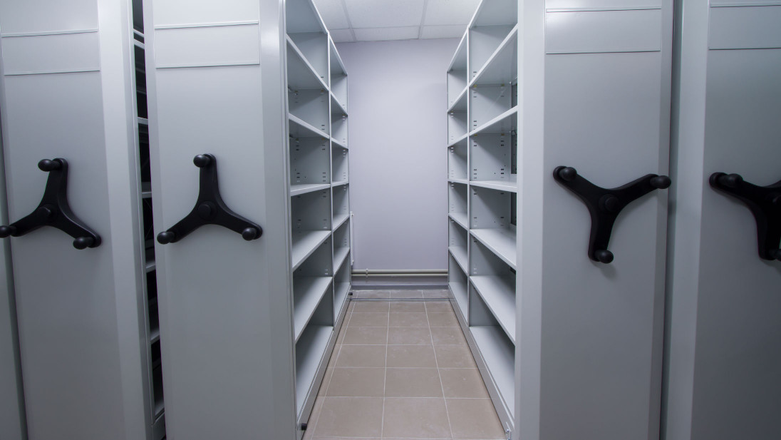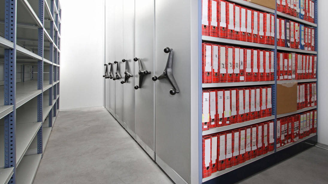 Принципиально архивные мобильные стеллажи очень похожи на стационарные полочные конструкции, установленные на мобильные базы, которые перемещаются по рельсам. Дополнительным преимуществом мобильных стеллажей являются обшитые стенки стеллажа, что обеспечивает удобный упор для папок или книг.