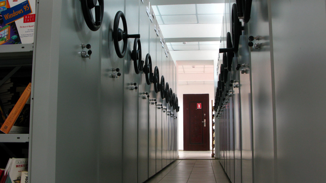 Электронное управление стеллажами делает использование предельно простым и удобным. В отличие от мобильных стеллажей с механическим управлением, подобные системы существенно экономят время, ведь пока работник архива несет документацию или товар в рабочую зону, стеллажи в это время могут перестраиваться для нового задания.
