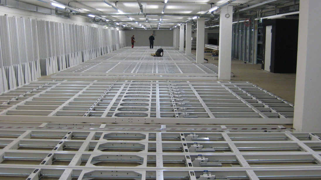 Минимальная высота профиля направляющих рельсов делает возможным их применение в уже отремонтированных помещениях, не требуя строительной подготовки (как в случае складских стеллажей). В большинстве случаев заказчики просто устанавливают рельсы на пол и переступают их. Но возможна также установка т.н. фальшпола, который обеспечивает ровное покрытие, снижает вероятность травм и повреждения оборудования.