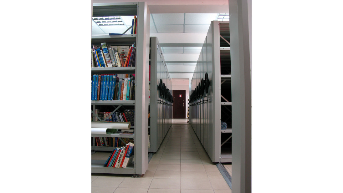 Благодаря большому диапазону размеров стеллажей (длина секции, высота и ширина) можно с легкостью спроектировать передвижной архивный стеллаж под любое помещение и для самых разнообразных грузов. Если помещение архива имеет сложную форму потолка или коммуникации, в этих местах стеллажи могут быть другой высоты, повторяя рельеф помещения и максимально задействуя объем.