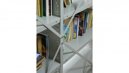 Каждая секция стеллажа оснащена стопором и антиопрокидывающим устройством. Кроме того, определенные секции в ряду имеют диагональные стяжки, обеспечивающие максимальную жесткость конструкции.