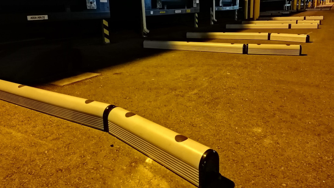 Направляющие профили для погрузочных доков TRUCK LINE производства итальянской компании MPM изготавливаются из особого полимера марки REFLEX. Благодаря ему изделия имеют достаточную прочность и упругость, чтобы выдерживать наезды колесами грузовых автомобилей.