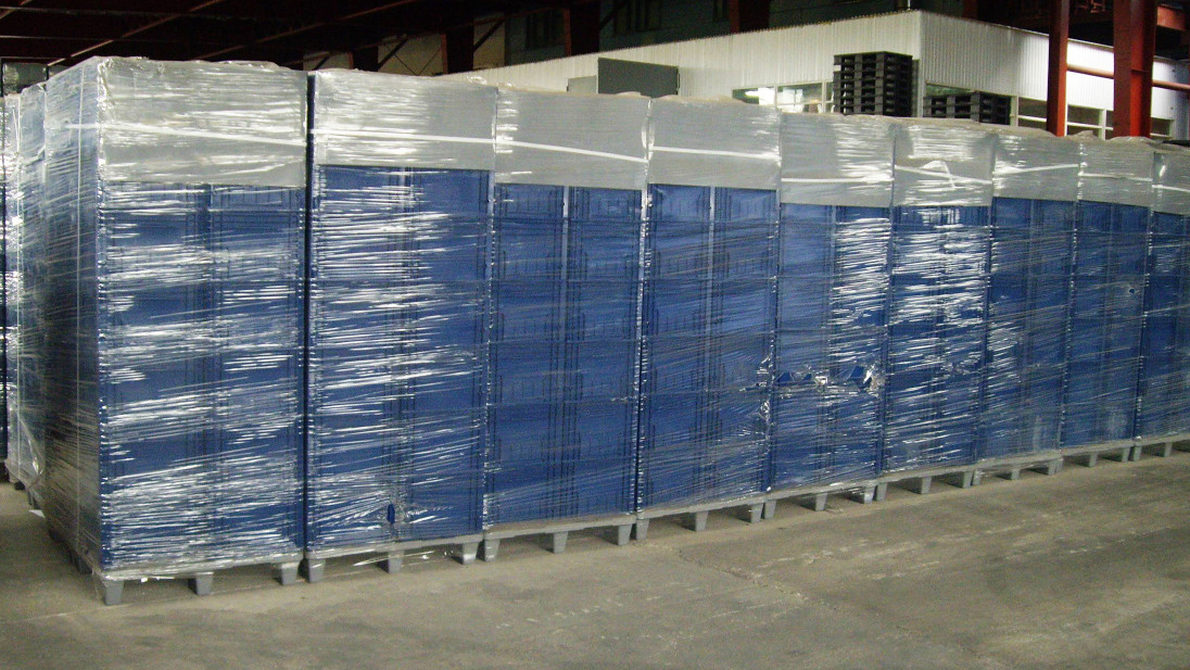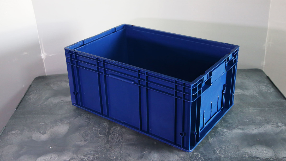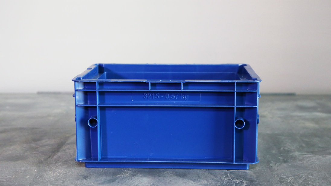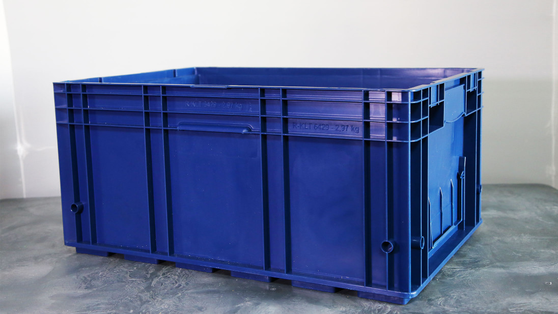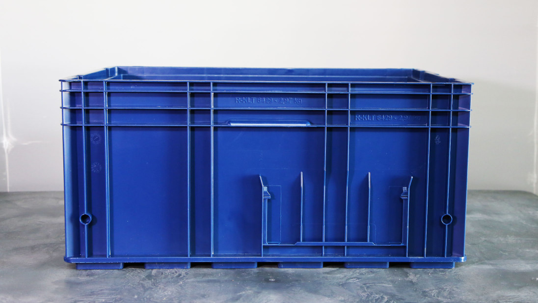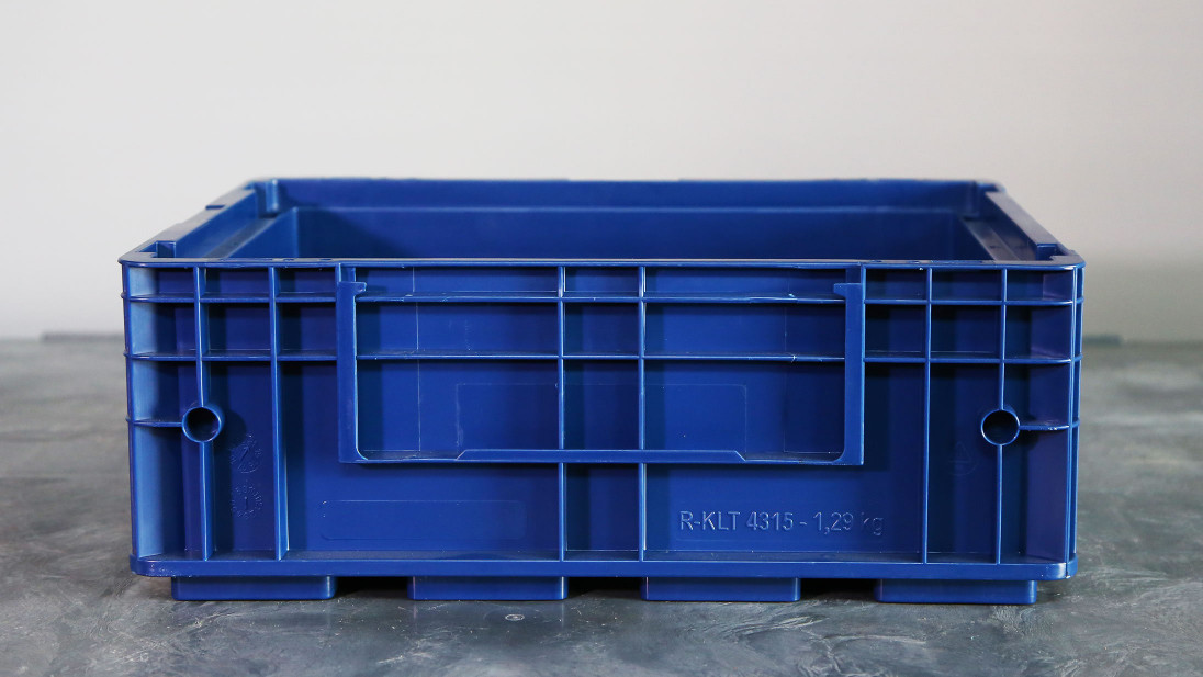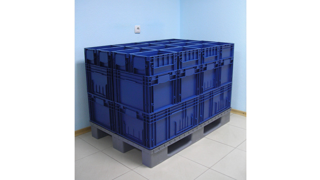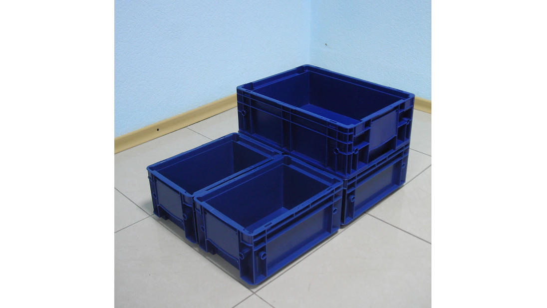 Используемый материал – первичный полипропилен (РР). Он обладает диэлектрическими свойствами и водонепроницаемостью, а также экологичностью, что дает возможность использовать ящики и в пищевой промышленности. Толстые стенки и внутренние ребра жесткости делают ящики KLT прочными и долговечными.