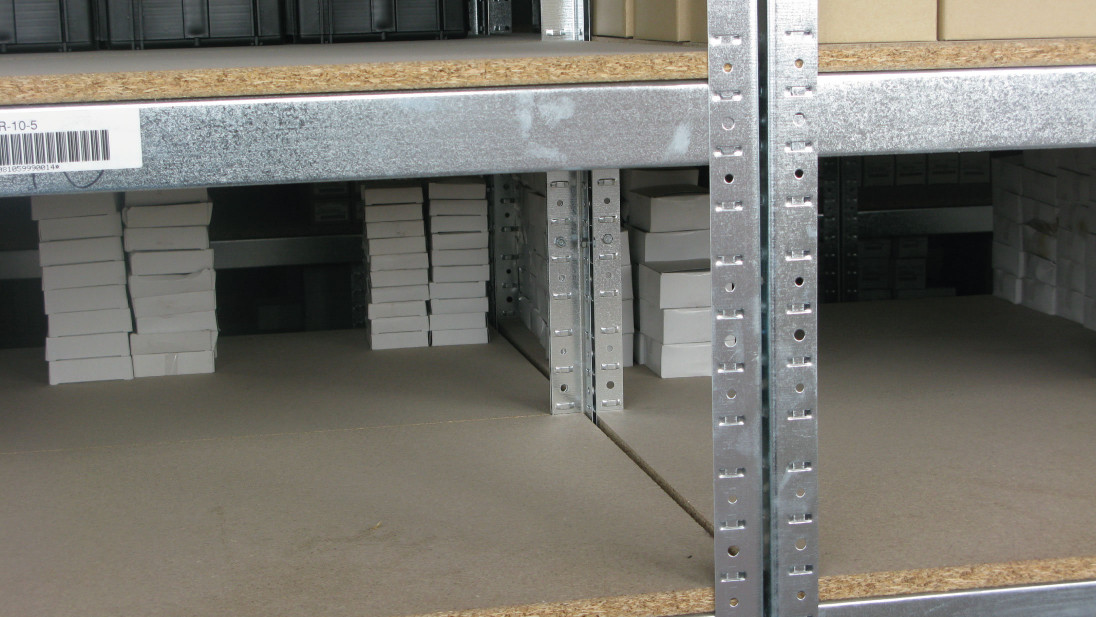 При установке стеллажей в длинный ряд, соседние секции стягиваются между собой болтовым соединением в нескольких местах по высоте. Это придает всей системе большую монолитность и помогает противостоять кренам в будущем.