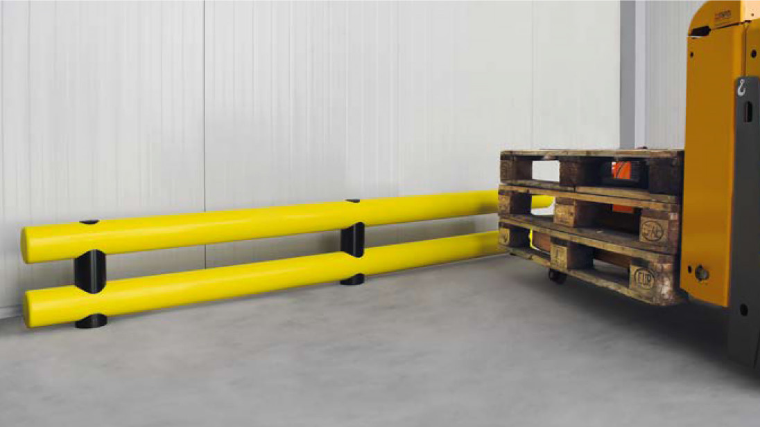 Двухъярусный барьер состоит из следующих элементов: опорные колонны, защитные поперечные бордюры, крепежные элементы. Двухъярусное барьерное ограждение, специально предназначенное для низкотемпературных зон, сохраняет ударную прочность и гибкость при температуре помещения до - 30°C. Данное оборудование имеет модульную конструкцию и может поставляться в шести размерных вариантах от 500 мм до 2500 мм.