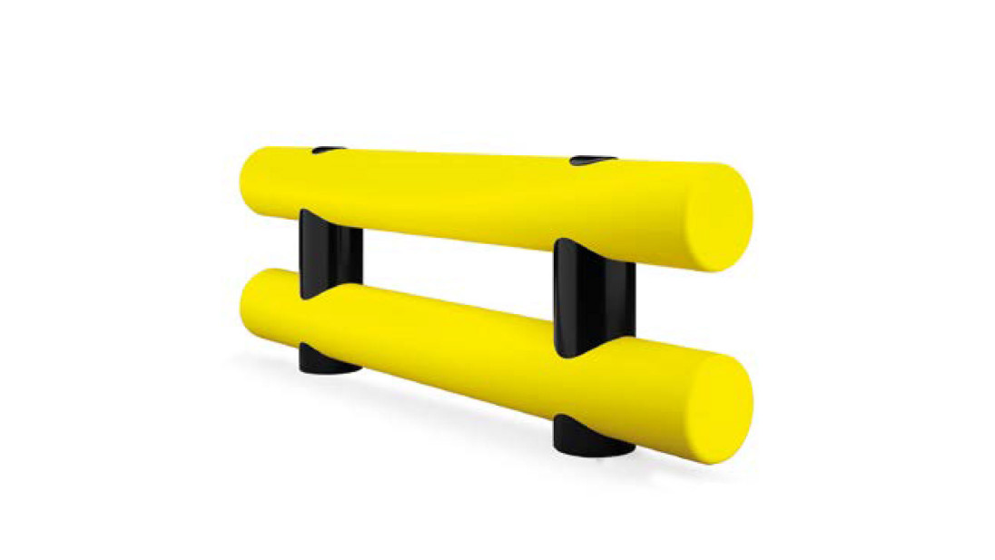 Защитные поперечные бордюры выполнены из крепкого технополимера с высоким уровнем демпфирования ударов. Защитные элементы имеют цилиндрическую форму с пазами для опорных элементов и отверстием под стержень крепления, также с обоих концов профиля нанесены фаски для округления углов, что предотвращает дополнительное травмирование и порчу оборудования. Бордюры изготовлены в желтом цвете, что обеспечивает высокую видимость ограждения. Также технополимер, из которого изготовлены защитные профили, устойчив к фотодеградации, химическим веществам и температурным перепадам, что значительно увеличивает срок его эксплуатации без потери эстетического вида.