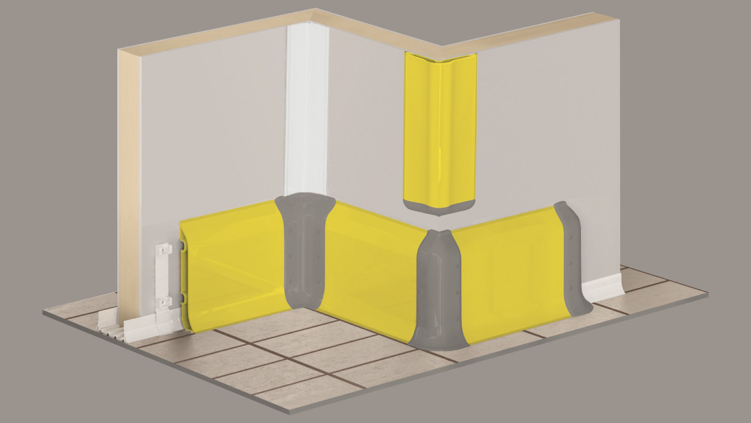 Бордюры выполнены в виде рельефных панелей с округлыми краями. Внутренние края, которые устанавливаются вплотную к стене, оснащены специальными амортизирующими выступами. Это дополнительно снижает степень воздействия на защищаемую поверхность и снижает урон при столкновениях.