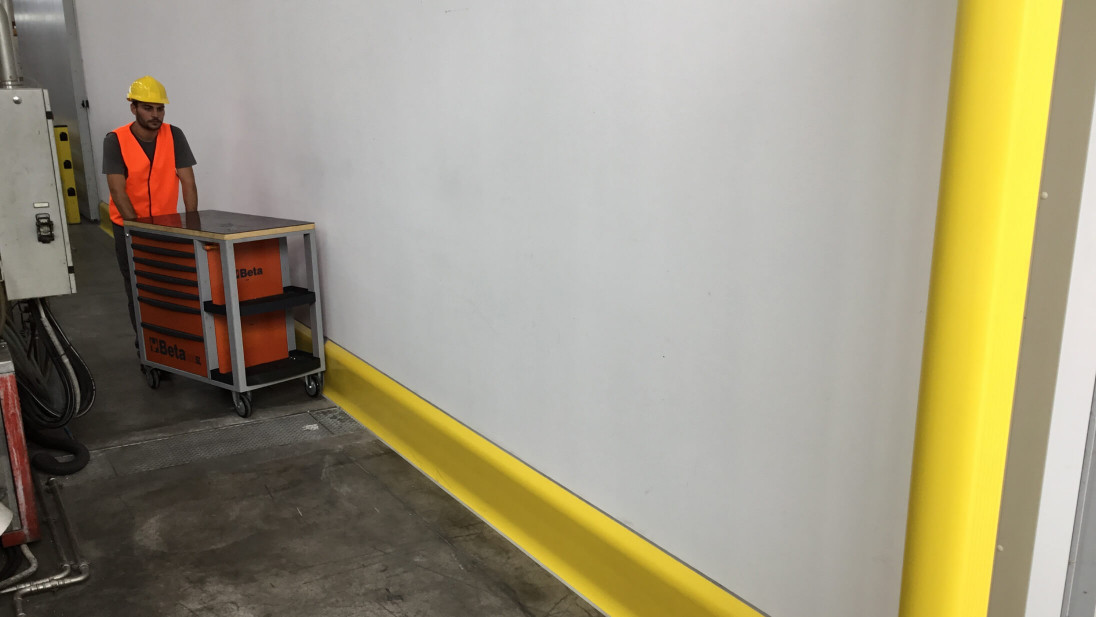 Промышленные плинтусы идеально подходят для рабочих помещений, в которых постоянно осуществляется перемещение легких грузов — например, с помощью ручных рокл или электрогидравлических тележек. Такие изделия предотвращают повреждение стен, перекрытий и панелей при столкновениях.