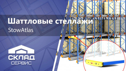 Шаттловые стеллажи визуально очень похожи на въездные (drive-in), только несущий профиль имеет более сложную конструкцию, необходимую для перемещения автоматизированной тележки (шаттла). Как и с гравитационными стеллажами, складской технике нет необходимости заезжать внутрь стеллажа, что повышает скорость работы и безопасность эксплуатации.