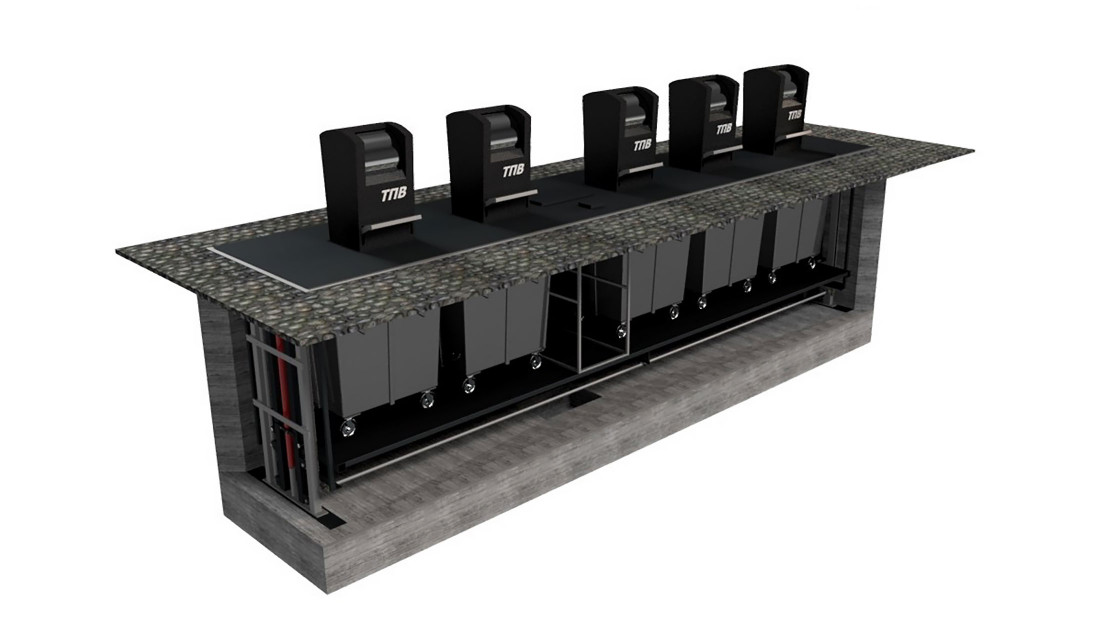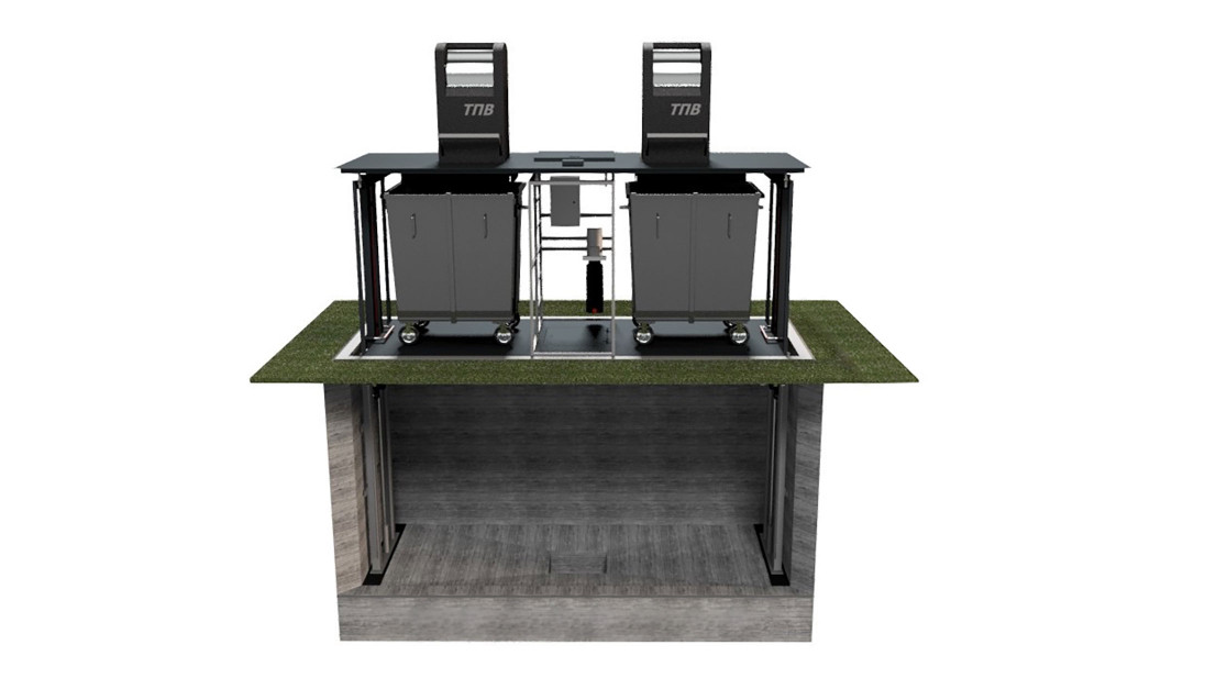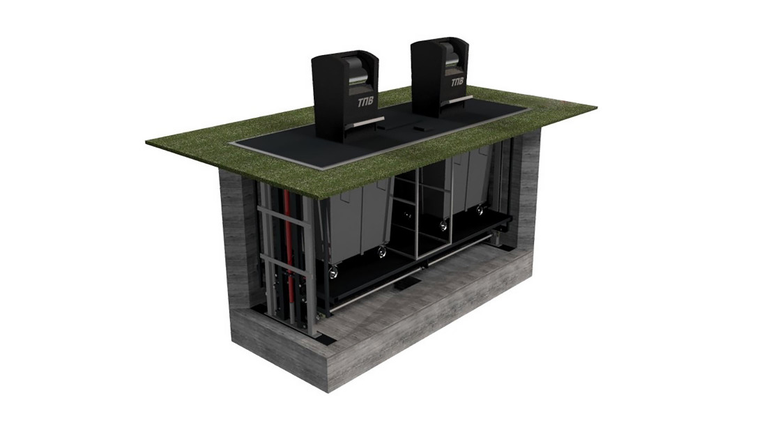 Простая, но одновременно инновационная система – сочетание консольного подъемника и классических четырехколесных баков. Подземные системы на базе подъемных платформ обеспечивают практически такую же функциональность, что и полноценные немецкие системы, в частности, блокируют распространение запахов и грязи, ограничивают доступ к мусору беспризорным людям и животным.