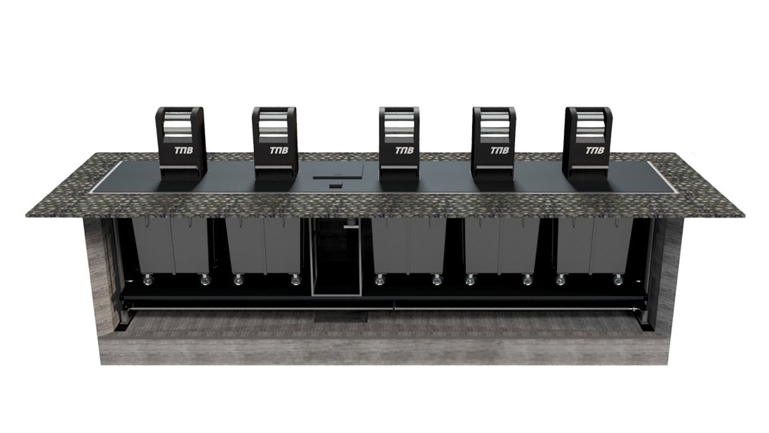 Основные отличия от немецких подземных систем: меньшая емкость хранения и необходимость большего времени для опорожнения. Ведь для того чтобы начать загрузку ТБО в мусоровоз, сначала нужно поднять платформу на уровень земли, выкатить контейнеры, а после опорожнения расставить баки на свои места и опустить платформу.