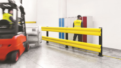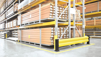 Модели BFLEX.FRONT/1 и BFLEX.COM/1 предназначены именно для защиты торцевых частей складских конструкций. В первом случае речь идет об одинарных стеллажах, а во втором — о двойных. В свою очередь, BFLEX.FRONT/2 и BFLEX.COM/2 используются для ограждения пешеходных путей на складе или производстве. Такое решение значительно поднимает безопасность работников за счет отсутствия доступа к потенциально опасным участкам.