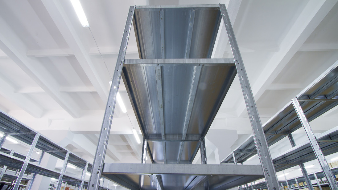 Заказчику были установлены стеллажи с глубиной полки 400 мм и 600 мм. Обратите внимание, полки, которые имеют глубину свыше 500 мм оснащены двумя усилителями. Это позволяет грузить полку с двух сторон и не волноваться о том, что металл просядет от неравномерных нагрузок.