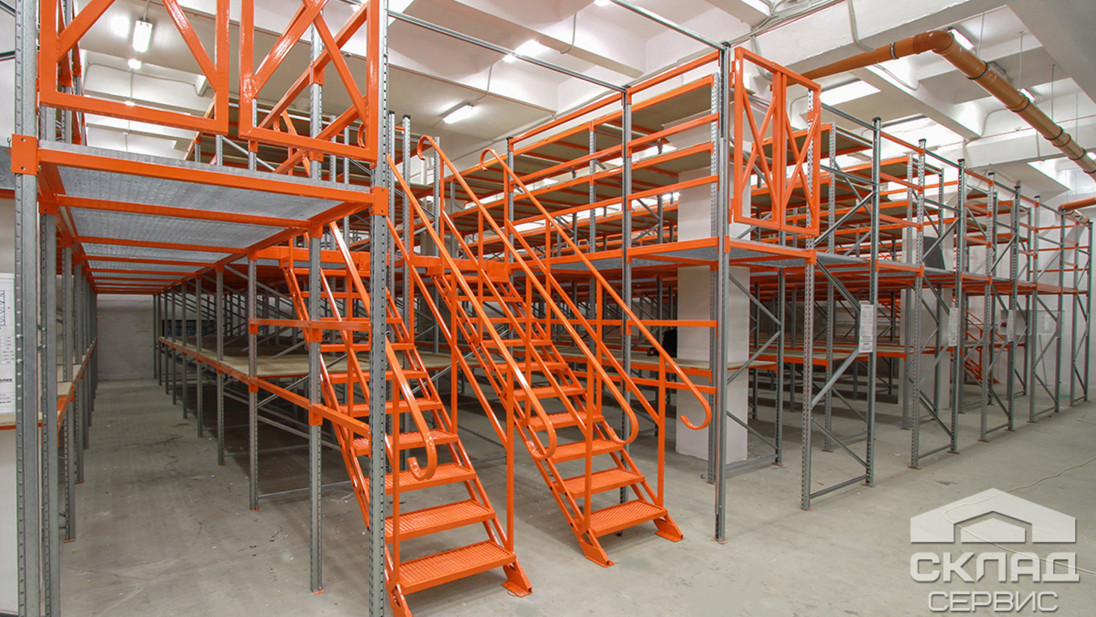 Каждый мезонин индивидуально проектируется инженерами исходя из параметров складского помещения и требуемых эксплуатационных характеристик. Многоэтажные стеллажи представляют сложную конструкцию, но при этом являются наиболее эффективными системами высотного полочного хранения и ручной обработки штучных грузов.