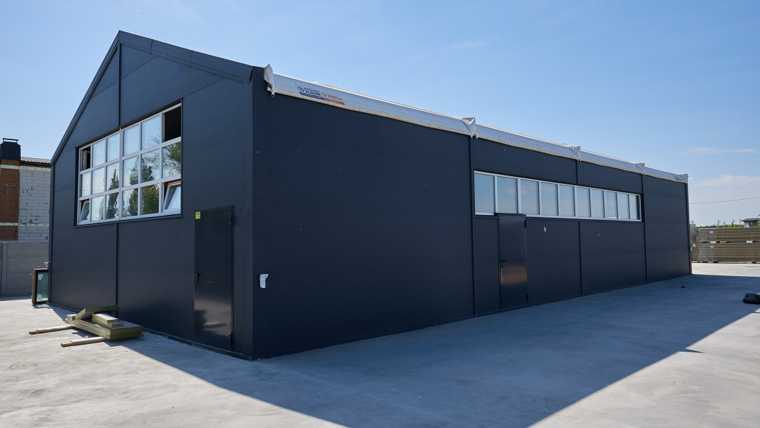 Це власне другий нюанс – врахування потреб замовника та гнучкість наших рішень. Зазвичай, послуга встановлення швидкомонтованих споруд – комплексна. Натомість від нас Замовник хотів отримати лише технічний супровід по процесах, консультацію щодо заливки фундаменту, розробку необхідних схем розташування приміщення, деталізацію інструкції з монтажу, а також виготовлення каркаса, тентового даху європейського виробника та доставку до місця монтажу.