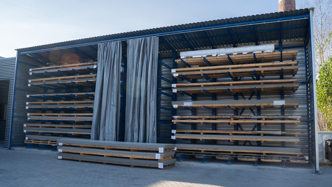 Еще одним интересным опытом для нас стала установка стеллажной системы для компании Plastic Ukraine. Мы установили консольные стеллажи для эксплуатации за пределами склада. Необходимо было организовать место для хранения длинномерных пластиковых листов с максимальной экономией пространства. Мы предложили пойти на эксперимент и установить вместительный консольный стеллаж на улице, рядом со складом. И вот что у нас вышло.