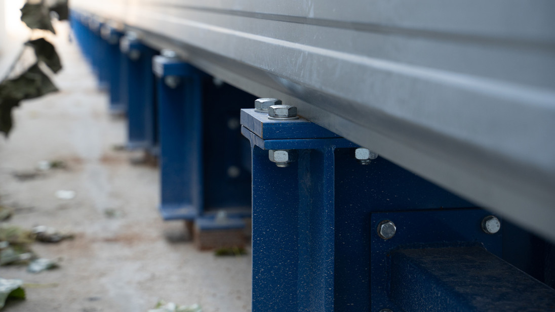 В первую очередь, мы подготовили место для будущей конструкции. Была организована специальная бетонная платформа, которая обеспечивает стойкость почвы к предстоящим нагрузкам. С помощью анкерных болтов мы собрали и закрепили металлический каркас.