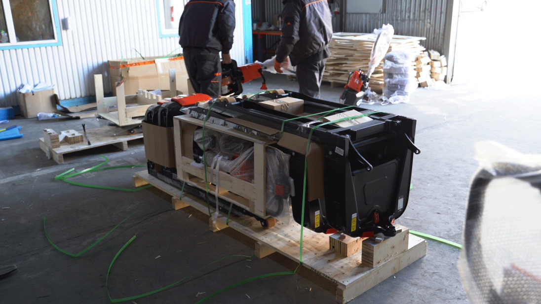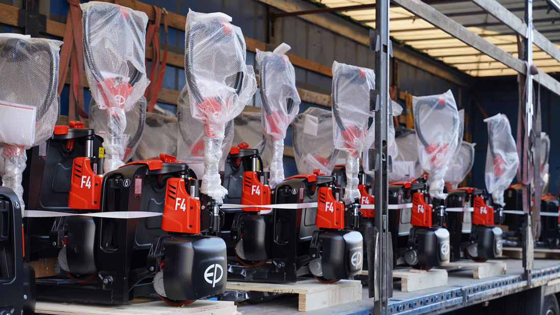 Поставка. Складне питання для багатьох компаній зараз. Тим більше коли йдеться про велику партію. Але унікальність F4 від EP в тому, що він має оптимізоване пакування. Подивіться на це. 176 одиниць техніки F4 у 40-футовому транспортному контейнері. Це дозволяє знизити вартість морського вантажу до 40%.