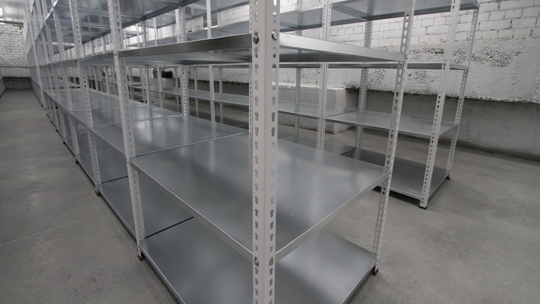На этот раз к нам обратился крупный поставщик брендовых аксессуаров с целью оборудовать свои складские помещения полочными стеллажами. Учитывая пожелание клиента максимально использовать складское пространство, мы предложили установить стеллажи с цельными металлическими полками из оцинкованной стали, у которых минимальная высота конструкции полки.