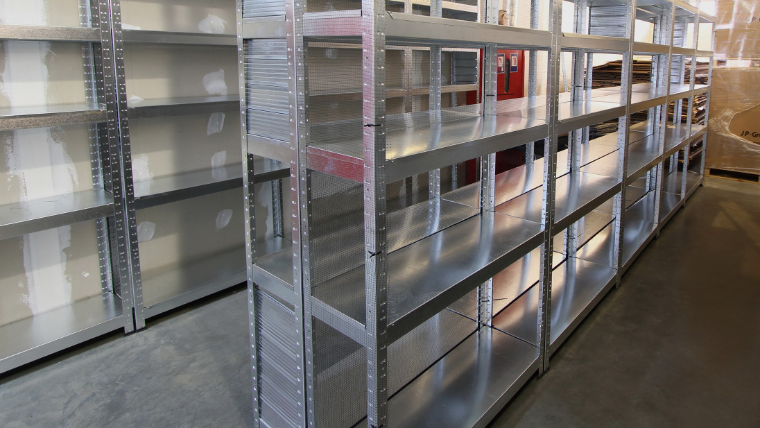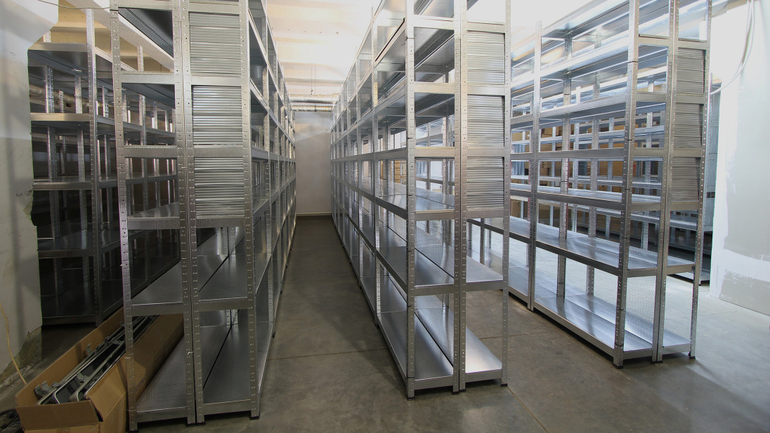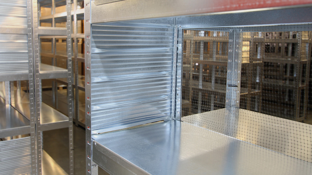 Стойки и полки стеллажа выполнены из оцинкованной стали - это универсальный и долговечный материал, который может прослужить длительное время даже в неотпливаемых и сырых помещениях. Чтобы защитить стеллажи от влаги, на нижние концы стоек надеваются пластиковые подпятники.