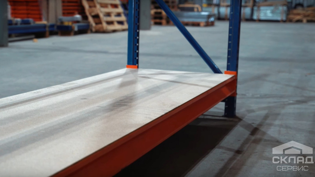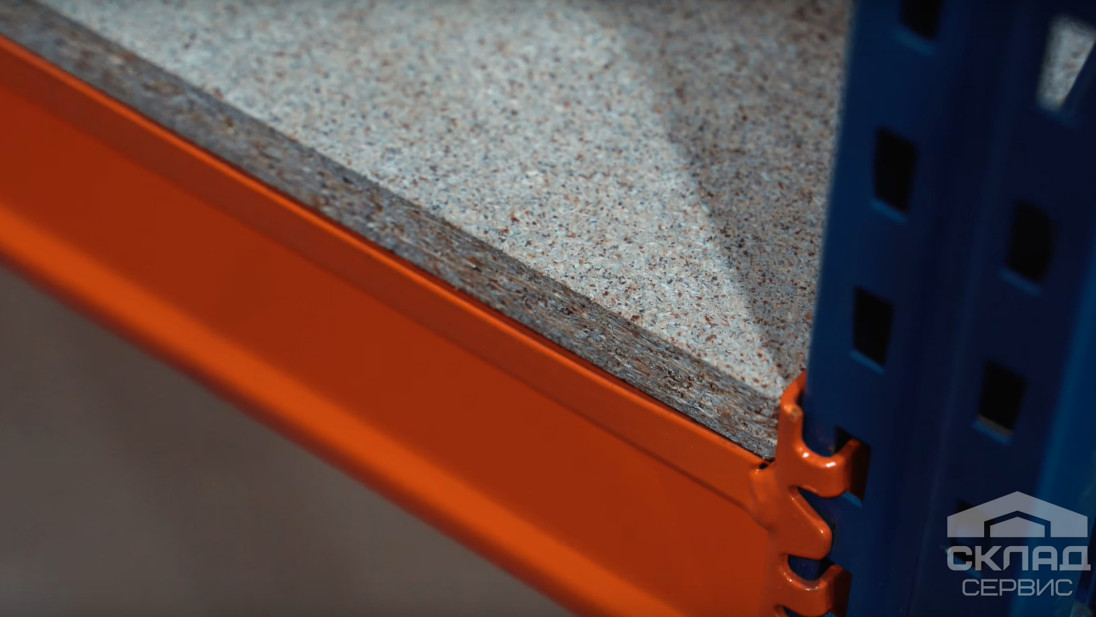 На уровни укладываем полку ДСП. Траверса имеет специальную форму, куда лист ДСП укладывается и при нагрузках не смещается с места.