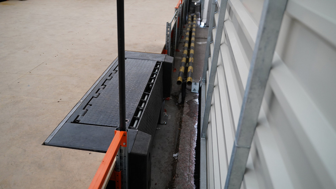 Нам потрібно було враховуючи різність висот, герметично пристикувати нову модульну конструкцію до наявної капітальної будівлі складу, яка має 5 стандартних рамп для вантажівок на висоті 1,2 м над поверхнею землі. Плюс до цього, потрібно додати ще рампи під середньотоннажний транспорт.