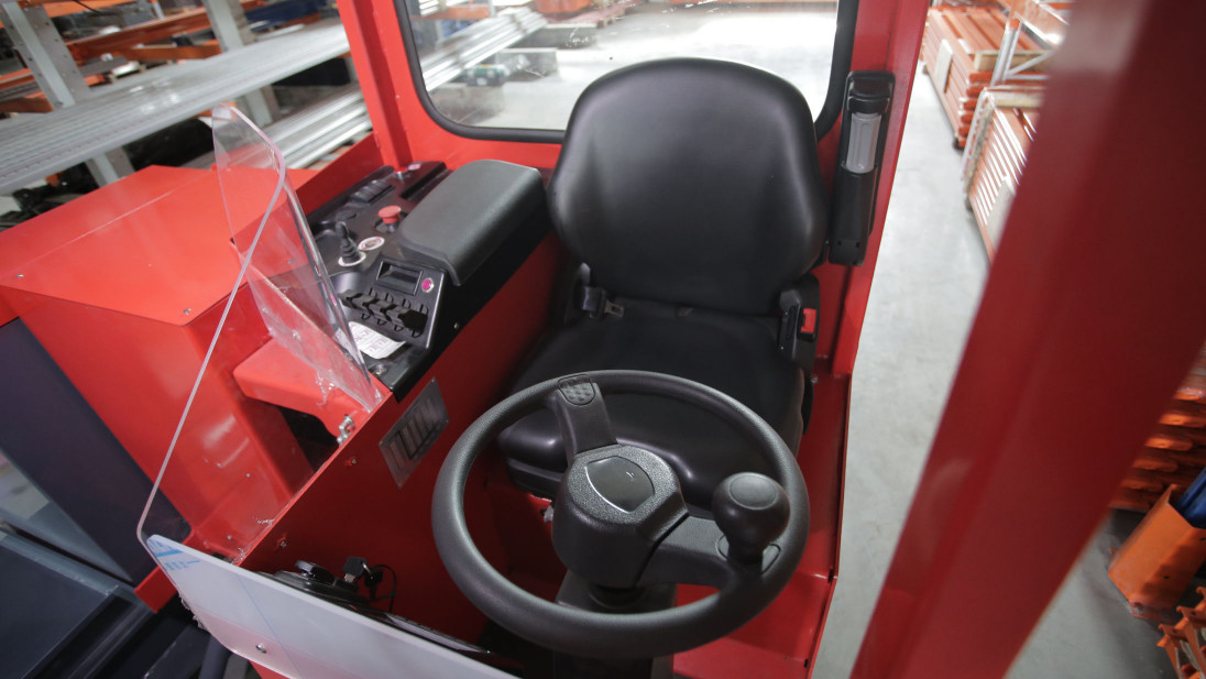 За рахунок унікальної конструкції навантажувач дуже зручний в експлуатації, оскільки тільки така машина може навіть не розвертатися для захоплення вантажу, а просто змінювати напрямок – колеса забезпечують вільне маневрування в будь-якому напрямку. Така конструкція дозволяє переміщати довгомірні вантажі таким чином, щоб їхній профіль розташовувався паралельно до напрямку руху. Це дає можливість маневрувати навіть у коридорах із мінімальною шириною.