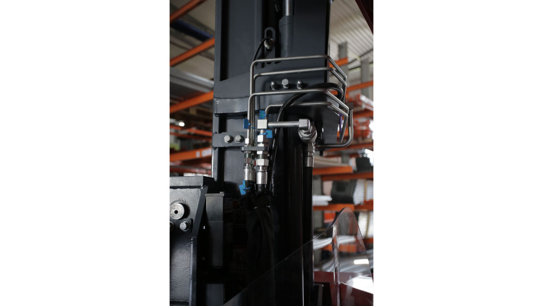 Навантажувач у стандартному виконанні оснащений позиціонером, який дозволяє безпосередньо з кабіни регулювати відстань між вилами. Це гарантує максимальну стійкість навантажувача і безпеку експлуатації, а також підвищує швидкість роботи – особливо, коли доводиться мати справу з вантажами різної довжини.