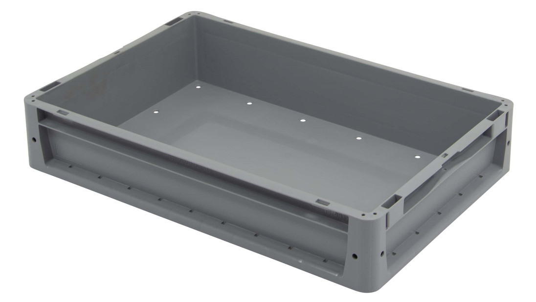 Контейнери ЄС зроблені так, щоб забезпечити максимальний термін зберігання продукції і зручне транспортування. Вони мають суцільне або перфороване дно з відкритими ручками з боків. Ящики з посиленим дном витримують вантаж вагою до 50 кг, а також забезпечують високу ударостійкість. Конструкція забезпечує можливість штабелювати ящики і застосовувати їх для автоматизованих процесів на складі; крім того, ця категорія тари сумісна з системами R/RL-КLT.