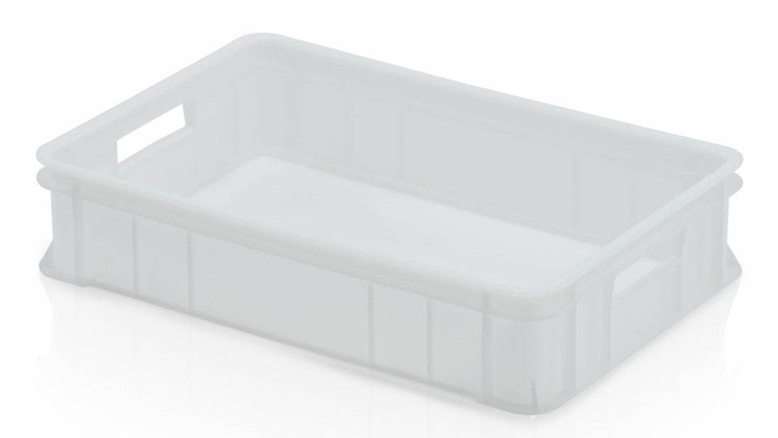 Матеріал контейнерів – поліетилен – найпоширеніший у світі пластик. Він характеризується високою жорсткістю, завдяки чому контейнери можна штабелювати. Матеріал зносостійкий, що означає, що контейнери можна використовувати на автоматизованих лініях. Дані контейнери – поширена оборотна тара, яка чудово забезпечує захист продукції. Крім того, в контейнерах передбачені ручки, що полегшує операції завантаження – вивантаження з автомобіля.