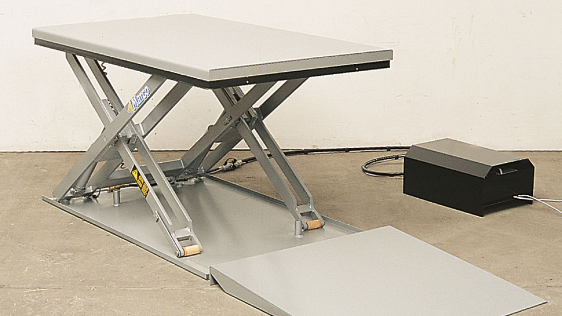 Низькопрофільні підйомні столи відрізняються від класичних аналогів насамперед гранично компактною конструкцією. Завдяки їй висота пристрою в складеному стані становить всього 8 см. Це дозволяє здійснювати заїзд на вантажну платформу за допомогою невеликого пандуса, без використання рампи. Таким чином, стає можливим використання ручних гідравлічних візків (рокл) при вантажно-розвантажувальних роботах. Це спрощує і здешевлює логістичні процеси.