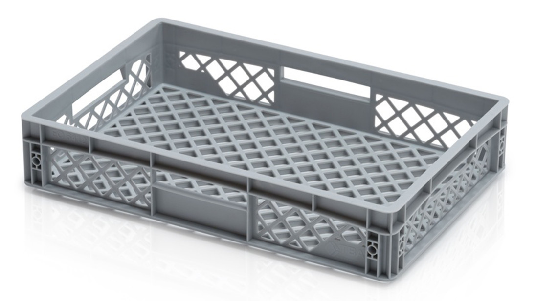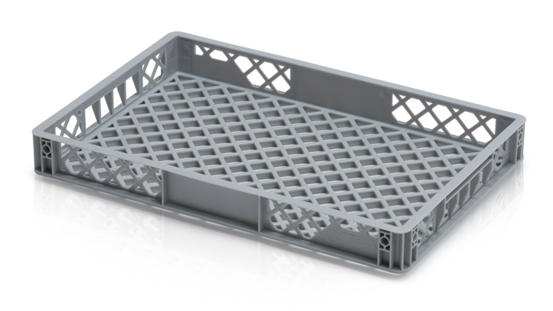 Перфоровані контейнери представлені широкою лінійкою найбільш поширених європейських габаритних розмірів: від лотків розміром 600х400х75 мм (ємністю 10 кг) до боксів 600х400х420 мм (ємністю 30 кг).