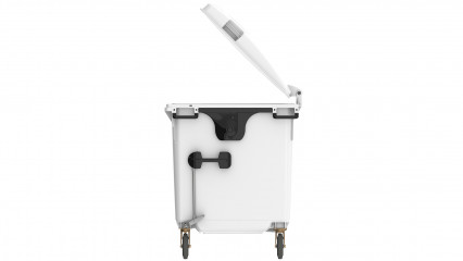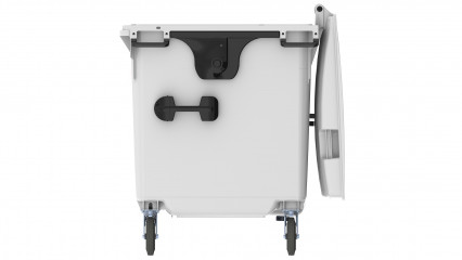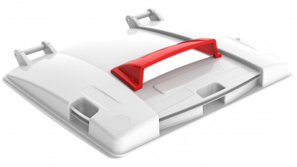 Для легкого переміщення контейнер обладнаний чотирма монолітними ручками, це забезпечує безпечне і просте поводження навіть із повністю завантаженим баком. На вибір клієнта ручки можуть бути як знімними, так і вбудованими. Можливі додаткові опції: кришка в кришці, 1-2 люки, різні замки, нанесення написів, педаль тощо.