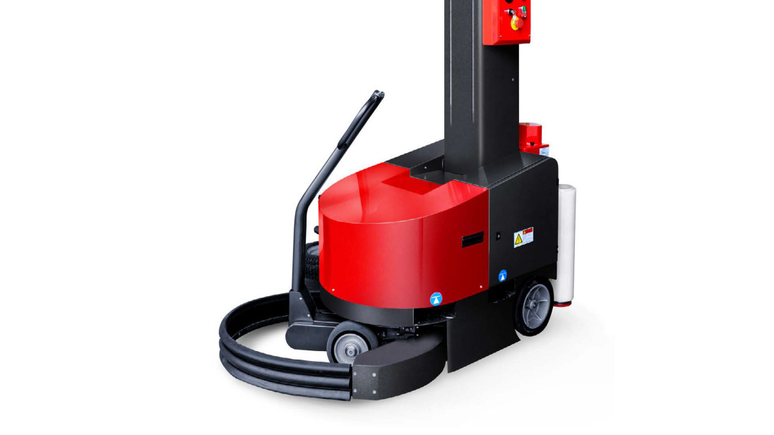 Роботизований палетообмотувач оснащений захисним бампером, який зупиняє машину, якщо вона натрапляє на своєму шляху на перешкоду. Резиновий бампер не завдає ушкоджень при зіткненні. Модель має акустичну та світлову систему сповіщення про початок пакувального циклу. Вбудований у штангу фотодатчик визначає висоту вантажу. Для маневрування використовується важіль керування, який оснащений системою блокування.