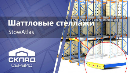 Стелажна система з автоматизованою платформою (шатл) може самостійно переміщувати палети по напрямних. Контроль за роботою шатла здійснюється за допомогою пульта дистанційного керування. Як і гравітаційні стелажі, такі системи розраховані на зберігання 1 SKU (товарної позиції) в каналі.